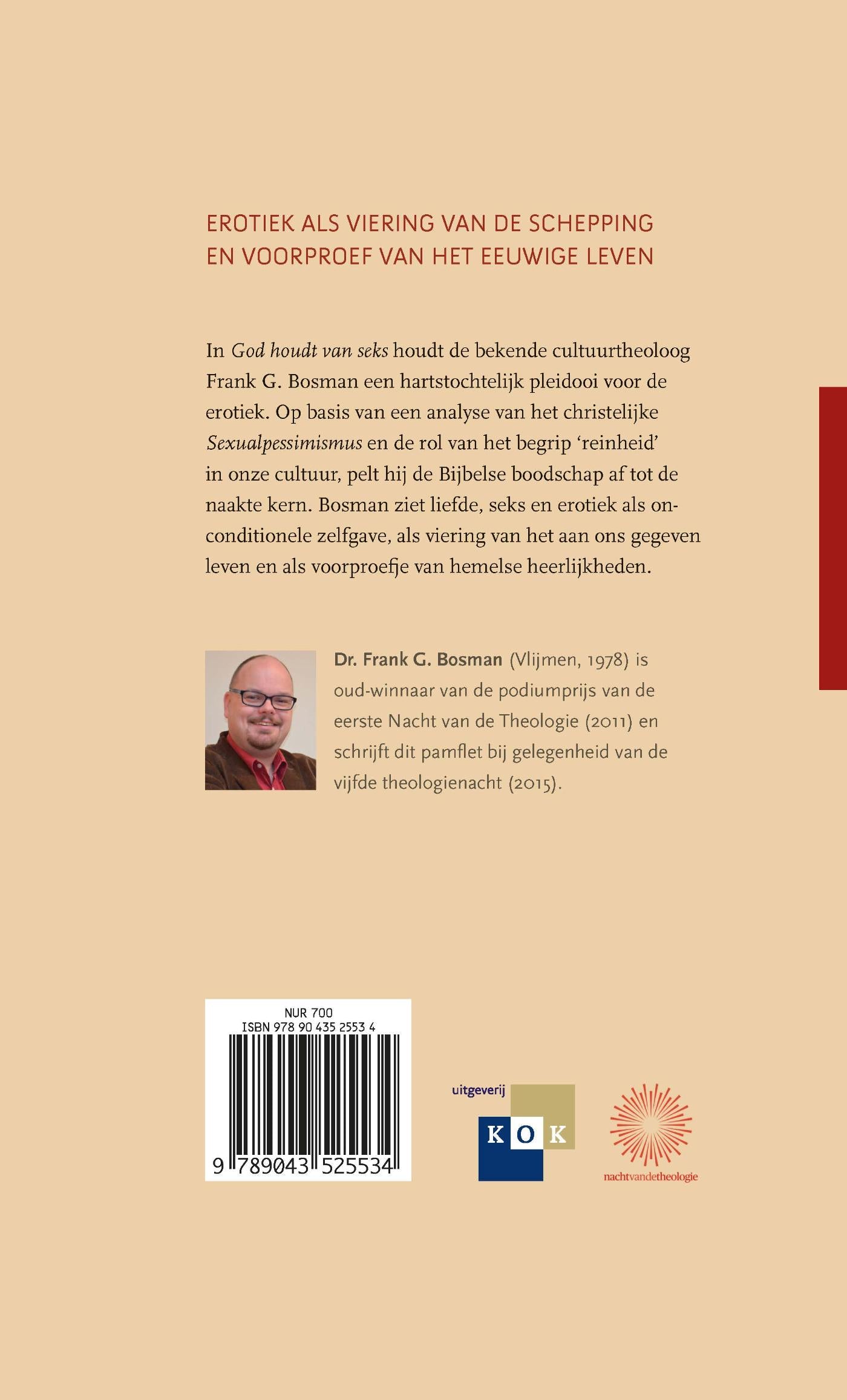 God houdt van seks is het essay bij de Nacht van de Theologie 2015, geschreven door de bekende cultuurtheoloog dr. Frank G. Bosman. Het essay is een hartstochtelijk pleidooi voor de erotiek. Op basis van een analyse van het christelijke Sexualpessimismus en de rol van het begrip ‘reinheid’ in onze cultuur, pelt hij de Bijbelse boodschap af tot de naakte kern. Bosman ziet liefde, seks en erotiek als onvoorwaardelijke zelfgave, als viering van het aan ons gegeven leven en als voorproefje van hemelse heerlijkheden.
