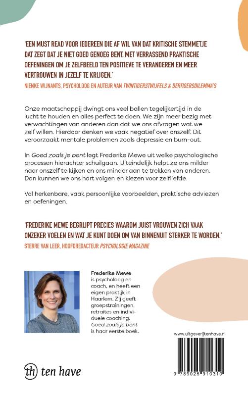 In Goed zoals je bent legt Frederike Mewe uit welke psychologische processen hierachter schuilgaan. Uiteindelijk helpt ze ons milder naar onszelf te kijken en ons minder aan te trekken van anderen. Dan kunnen we ons hart volgen en kiezen voor zelfliefde.