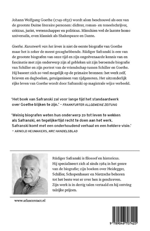 Goethe. Kunstwerk van het leven is een van de meest gezaghebbende biografiën over diens leven en werk. Rüdiger Safranski's ongeëvenaarde kennis van en fascinatie met zijn onderwerp zijn al gebleken uit zijn beroemde biografie van Schiller en zijn portret van de vriendschap tussen Schiller en Goethe. Hij baseert zich zo veel mogelijk op de primaire bronnen: het werk zelf, brieven en dagboeken, getuigenissen van tijdgenoten. Het uitzonderlijk rijke leven van Goethe wordt door Safranski op magistrale wijze verbeeld.