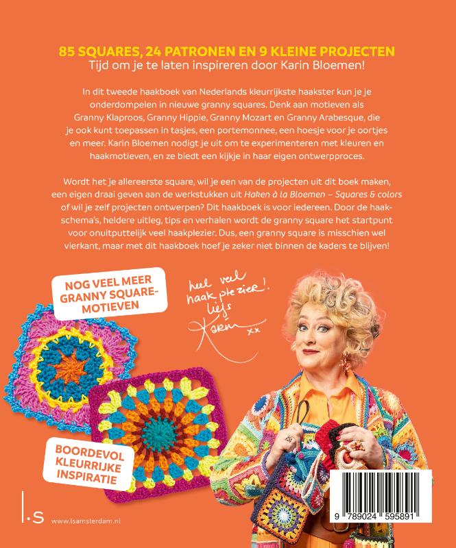 Na het enorme succes van haar eerste haakboek heeft La Bloemen de draad weer opgepakt en nu komt ze met dé inspiratiegids voor fans van de granny square, wederom in haar eigenzinnige stijl. Met een groot aanbod aan ontwerpen, ingedeeld op thema, gaat er een creatieve wereld voor je open. Laat je inspireren, maak de kleine projecten in dit boek, pas de granny’s toe op de werkstukken uit Haken à la Bloemen – Squares and colors óf gebruik ze als startpunt voor je eigen ontwerpen.