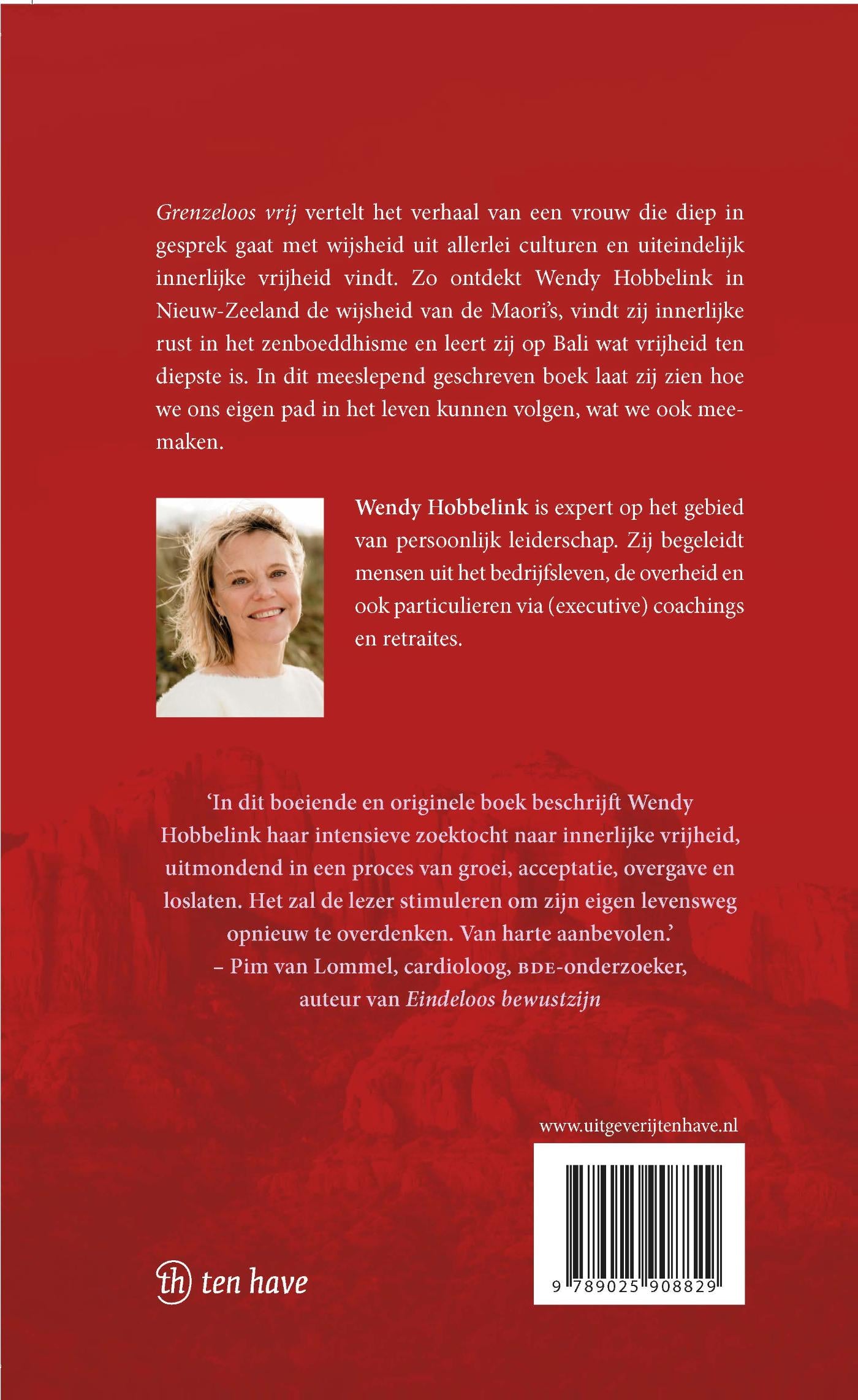 ‘Grenzeloos vrij’ vertelt het verhaal van een vrouw die diep in gesprek gaat met wijsheid uit allerlei culturen en uiteindelijk innerlijke vrijheid vindt. Zo ontdekte Wendy Hobbelink in Nieuw-Zeeland de wijsheid van de Maori’s, vond zij innerlijke rust in het zenboeddhisme en leerde zij op Bali wat vrijheid ten diepste is. Dit meeslepend geschreven boek is van belang voor iedereen die zich wel eens afvraagt of hij of zij eigenlijk wel de juiste weg in het leven bewandelt.