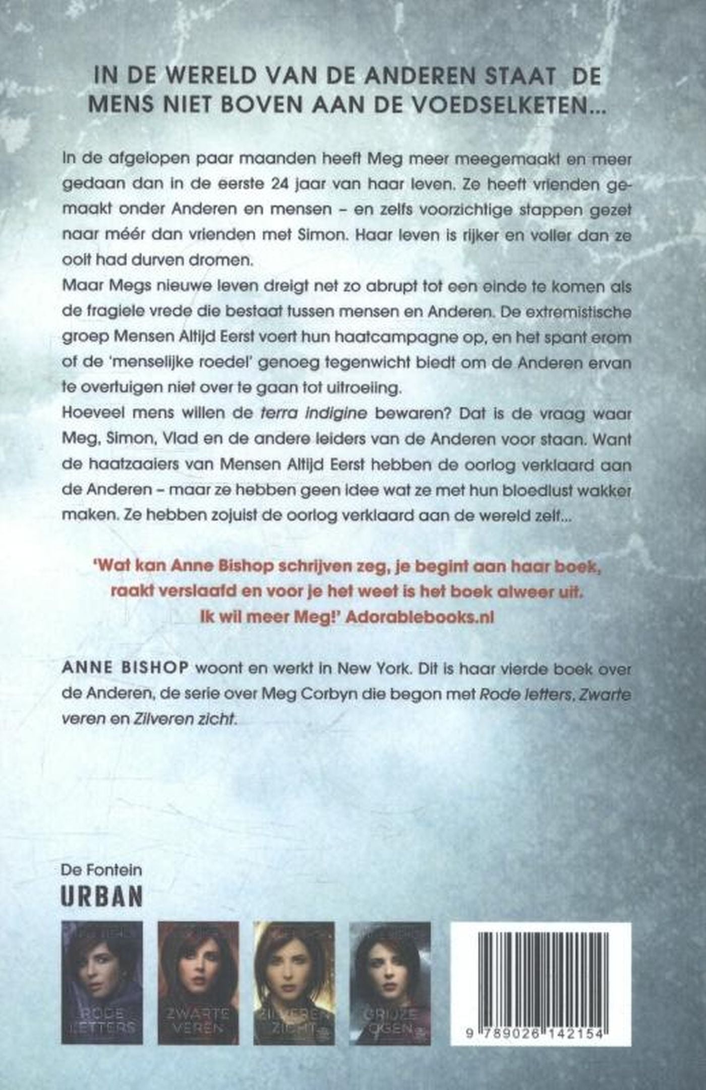 Hoeveel menselijkheid willen de terra indigine bewaren? Dat is de vraag waar Meg, Simon, Vlad en de andere leiders van het Stadspark voor staan. De haatzaaiers van Mensen Altijd Eerst verklaren de oorlog aan de Anderen – maar ze hebben geen idee wat ze met hun bloedlust wakker maken. Dit gevecht komt voor de Anderen neer op een simpele vraag: Hoeveel menselijkheid willen de terra indigine bewaren?