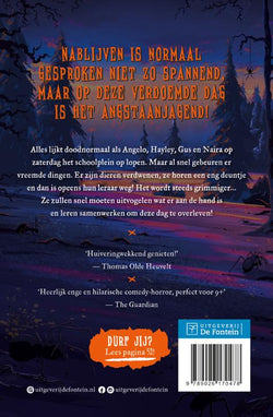 Alles lijkt doodnormaal als Angelo, Hayley, Gus en Naira op zaterdag het schoolplein op lopen. Maar al snel gebeuren er vreemde dingen. Er zijn dieren verdwenen, ze horen een eng deuntje en dan is opeens hun leraar weg! Het wordt steeds grimmiger...