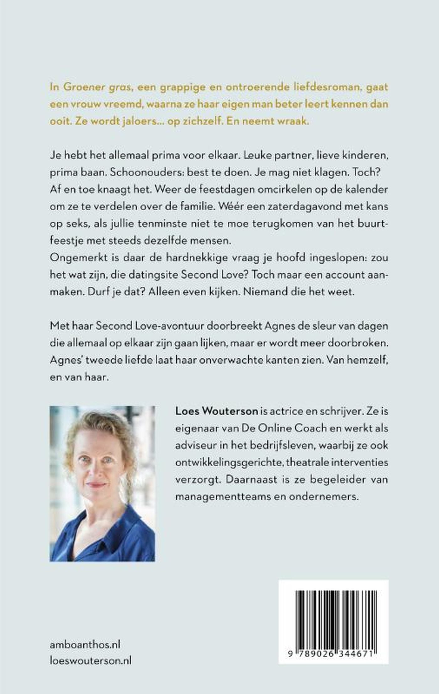 Het Second Love-avontuur van de hoofdpersoon van ‘Groener gras’, Agnes, doorbreekt de sleur van de dagen die allemaal op elkaar zijn gaan lijken, maar er wordt meer doorbroken. Haar tweede liefde laat haar onverwachte kanten zien. Van hemzelf. En van haar.