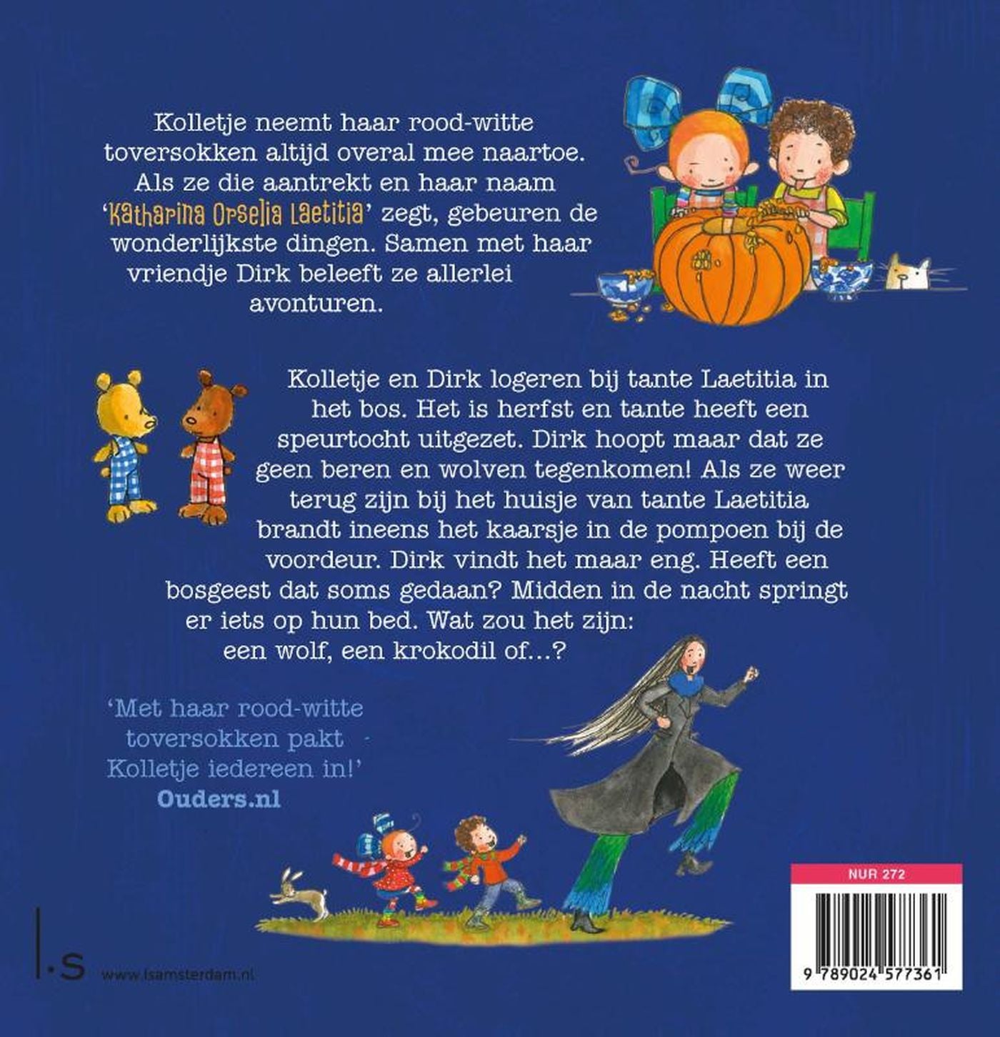 Kolletje en Dirk logeren bij tante Laetitia in het bos. Het is herfst en tante holt een pompoen uit en maakt pompoensoep met paddenstoelen. Als ze terugkomen van het paddenstoelen zoeken in het bos, brandt er een kaarsje in de uitgeholde pompoen. Hoe kan dat nou? Dirk vindt het maar eng. Tante Laetitia vertelt dat ze vroeger wel eens bang was voor monsters onder het bed. Ze weet ook een oplossing: heel snel je bed in springen, zodat het monster je niet kan grijpen. Als Kolletje en Dirk ’s nachts iets horen, is het geen bedmonster. Maar wat is het dan wel? Een wolf, een krokodil of...?