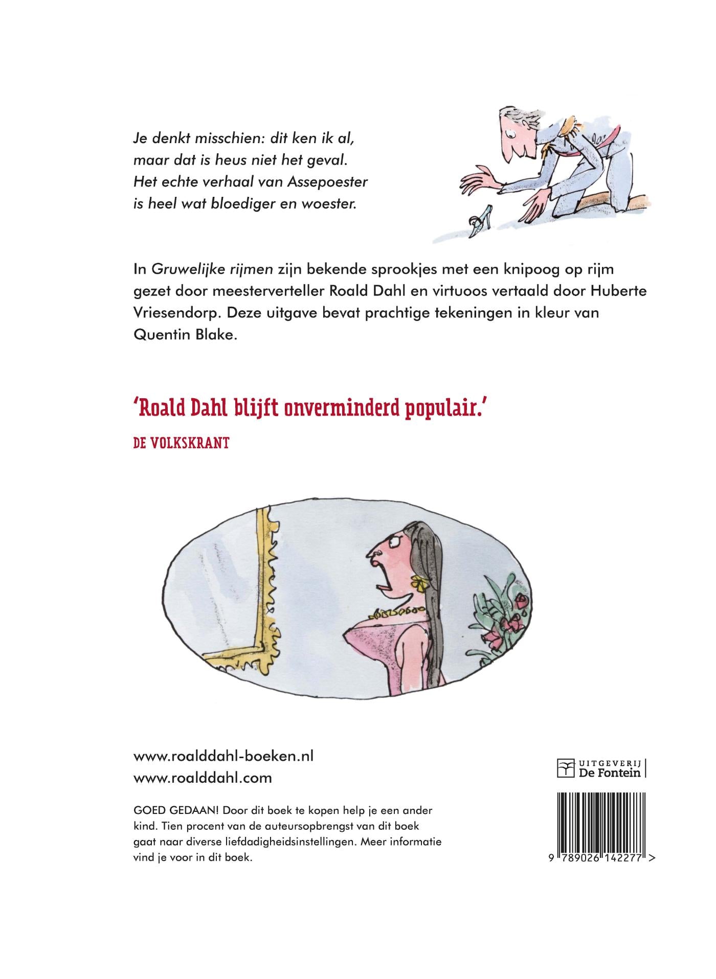 In Gruwelijke rijmen zijn bekende sprookjes met een knipoog op rijm gezet door Roald Dahl en virtuoos vertaald door Huberte Vriesendorp.