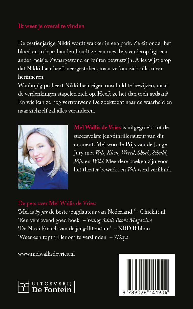 Nikki wordt wakker in een park, gewond en onder het bloed. In haar handen houdt ze een mes, en iets verderop ligt een zwaargewond meisje. Nikki heeft geen idee wie ze is. Maar alles wijst erop dat Nikki haar hebt neergestoken. Alleen weet ze er zelf niks meer van…