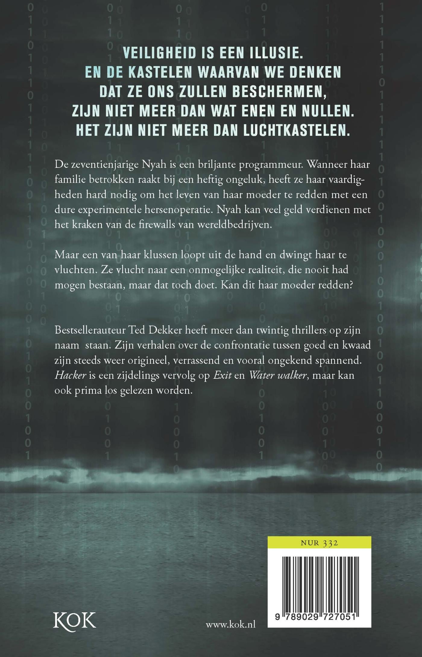 In Ted Dekkers nieuwe thriller ‘Hacker’ is de hoofdrol weggelegd voor de zeventienjarige briljante programmeur Nyah. Wanneer haar familie betrokken raakt bij een heftig ongeluk, heeft ze haar skills hard nodig om het leven van haar moeder te redden met een dure experimentele hersenoperatie. Nyah kan veel geld verdienen met het kraken van de firewalls van wereldbedrijven. Maar een van haar klussen loopt uit de hand en dwingt haar te vluchten. Ze vlucht naar een onmogelijke realiteit, die nooit had mogen bestaan, maar dat toch doet. Kan Nyah haar moeder nog redden?