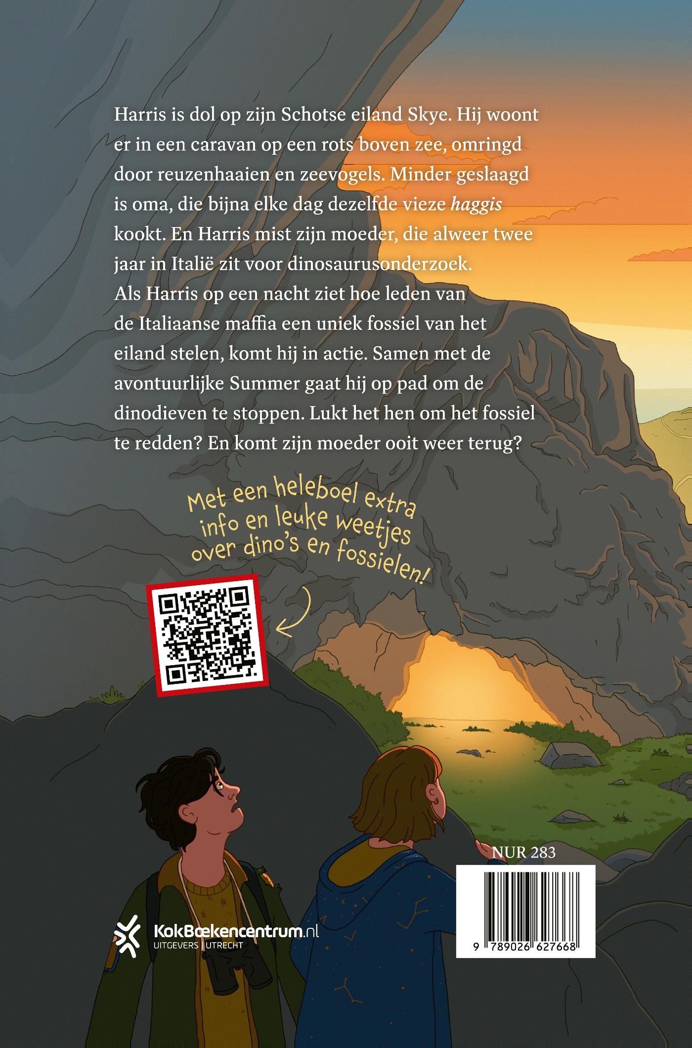 ‘Harris en de dinomaffia’ van Petra van Rijssen is een spannend jeugdboek over een twaalfjarige jongen die het opneemt tegen een bende criminelen in Schotland. Harris is dol op ‘zijn’ eiland Skye. Hij woont er in een caravan op een rots boven zee, omringd door reuzenhaaien en zeevogels. Minder geslaagd is oma, die elke dag dezelfde gore haggis kookt. En Harris mist zijn moeder, die alweer twee jaar in Italië zit voor dinosaurusonderzoek. Als Harris op een nacht ziet hoe leden van de Italiaanse maffia een uniek fossiel van het eiland stelen, komt hij in actie. Samen met de avontuurlijke Summer gaat hij op pad om de dinodieven te stoppen. Lukt het hen om het fossiel te redden? En komt zijn moeder ooit weer terug?