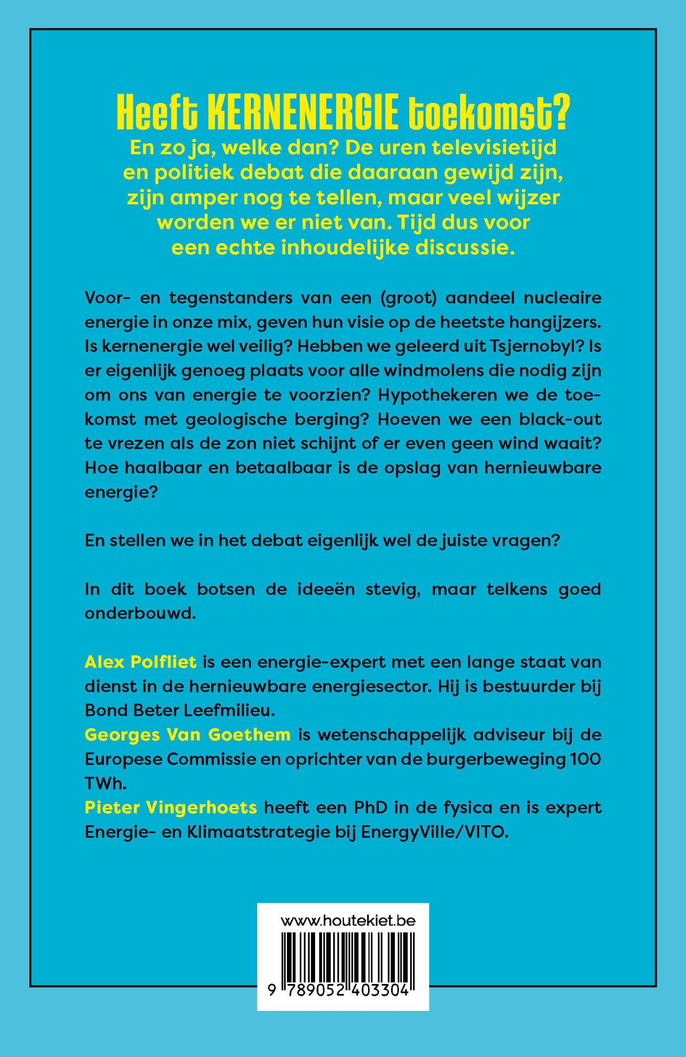 Voor- en tegenstanders van een (groot) aandeel nucleaire energie in onze mix, geven hun visie op de heetste hangijzers. Is kernenergie wel veilig? Hebben we geleerd uit Tsjernobyl? Is er eigenlijk genoeg plaats voor alle windmolens die nodig zijn om ons van energie te voorzien? Hypothekeren we de toekomst met geologische berging? Hoeven we een black-out te vrezen als de zon niet schijnt of er even geen wind waait? Hoe haalbaar en betaalbaar is de opslag van hernieuwbare energie?