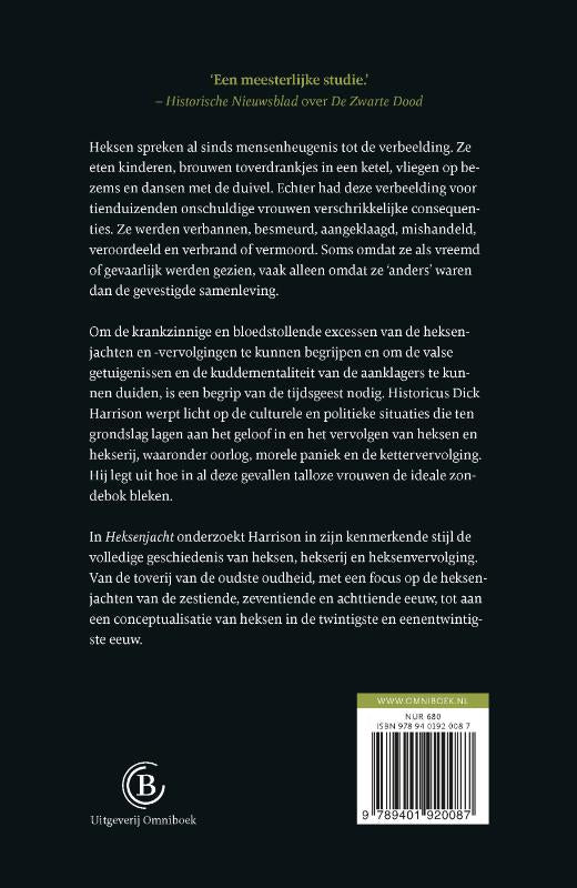 Het beeld van ‘de heks’ had voor talloze onschuldige vrouwen verschrikkelijke consequenties. Zij werden verbannen, besmeurd, aangeklaagd, mishandeld, veroordeeld en vermoord. Soms omdat ze als vreemd of gevaarlijk werden gezien, vaak alleen omdat ze ‘anders’ waren dan de gevestigde samenleving. Om deze gebeurtenissen te kunnen begrijpen, is begrip van de tijdsgeest nodig. Dick Harrison werpt licht op de culturele en politieke omstandigheden die ten grondslag lagen aan het geloof in en vervolgen van heksen en hekserij en legt uit hoe in al deze gevallen tal van vrouwen de ideale zondebok bleken.