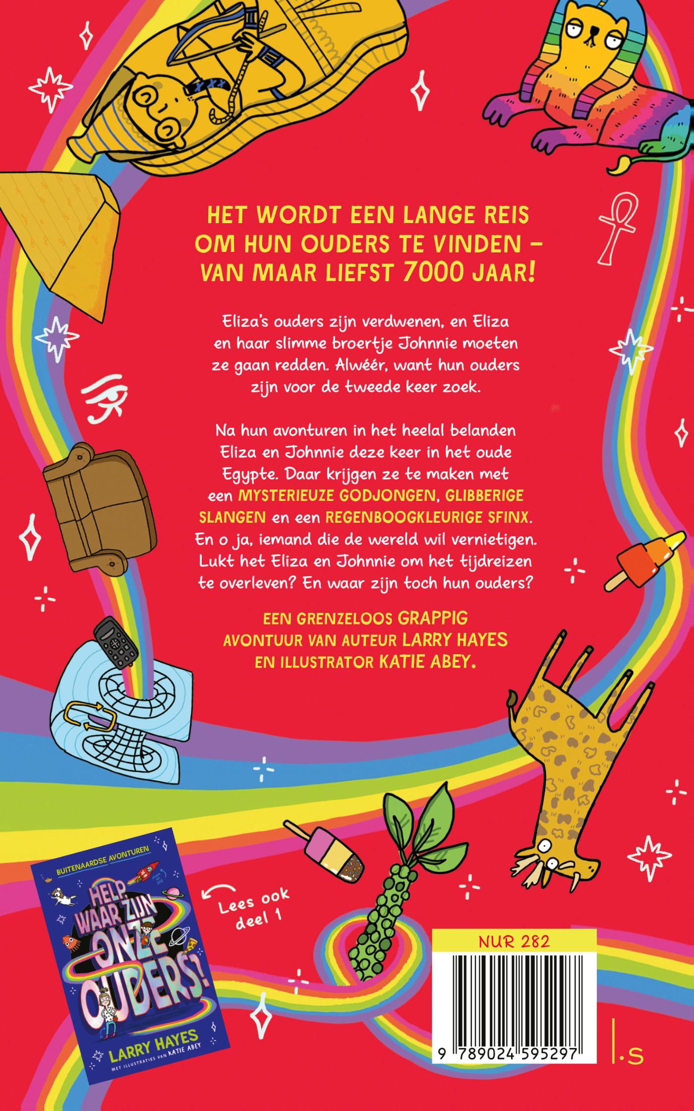 Deze keer belanden Eliza en Johnnie tijdens hun zoektocht in het oude Egypte. Onderweg krijgen ze te maken met vriendelijke Egyptenaren, een mysterieuze jonge god, glibberige slangen, een regenboogkleurige sfinx en zelfs iemand die de wereld wil vernietigen. Lukt het hun om hun ouders te vinden? En belangrijker nog: kunnen ze weer terug naar de toekomst reizen?