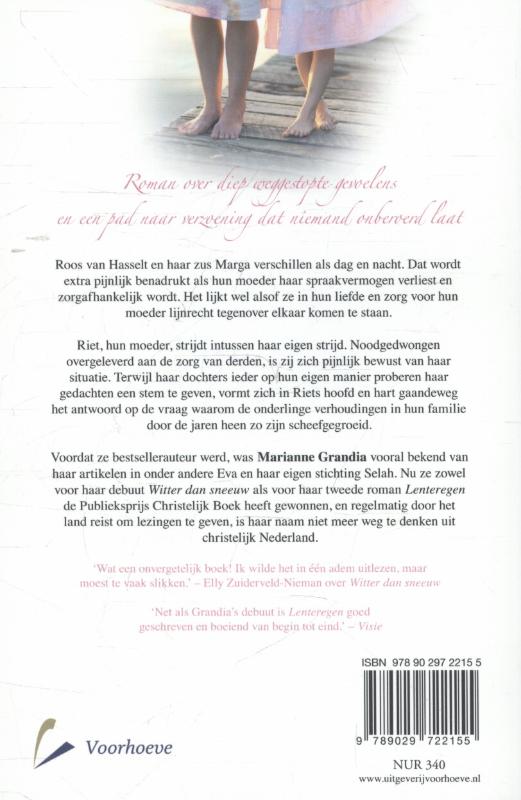 In Hemeldauw van Marianne Grandia is een ontroerend verhaal over de zussen Roos en Marga. Ze verschillen van elkaar als dag en nacht. Wanneer hun moeder Riet volledig zorgafhankelijk wordt en ze haar naar een verpleegtehuis moet brengen, worden die verschillen pijnlijk duidelijk. Niet veel later verliest hun moeder haar spraakvermogen. Roos voelt zich geroepen om nu haar stem te zijn. Als haar man zich echter steeds meer aan de zijde van Marga schaart en haar broer Jan-Jaap ook weinig steun biedt, gaat Roos op zoek naar een bondgenoot.