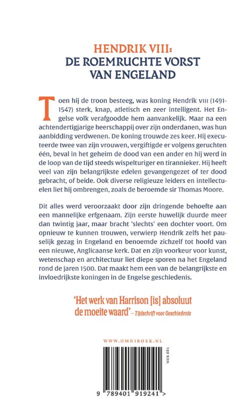 De Zweedse hoogleraar Dick Harrison vertelt het kleurrijke levensverhaal van Hendrik VIII (1491-1547). Hendrik werd, na de dood van zijn vader, de tweede Tudor-koning van Engeland. Hij leidde een roemrucht bestaan. Hij had zes echtgenotes, van wie hij er twee liet onthoofden. Hij scheidde, voor eigen gewin, de Anglicaanse kerk af van de Kerk van Rome, en hij verenigde Engeland en Wales wettelijk in één koninkrijk. Als renaissanceprins koesterde hij een grote liefde voor kunst, wetenschap en literatuur, maar hij was tegelijkertijd meedogenloos.