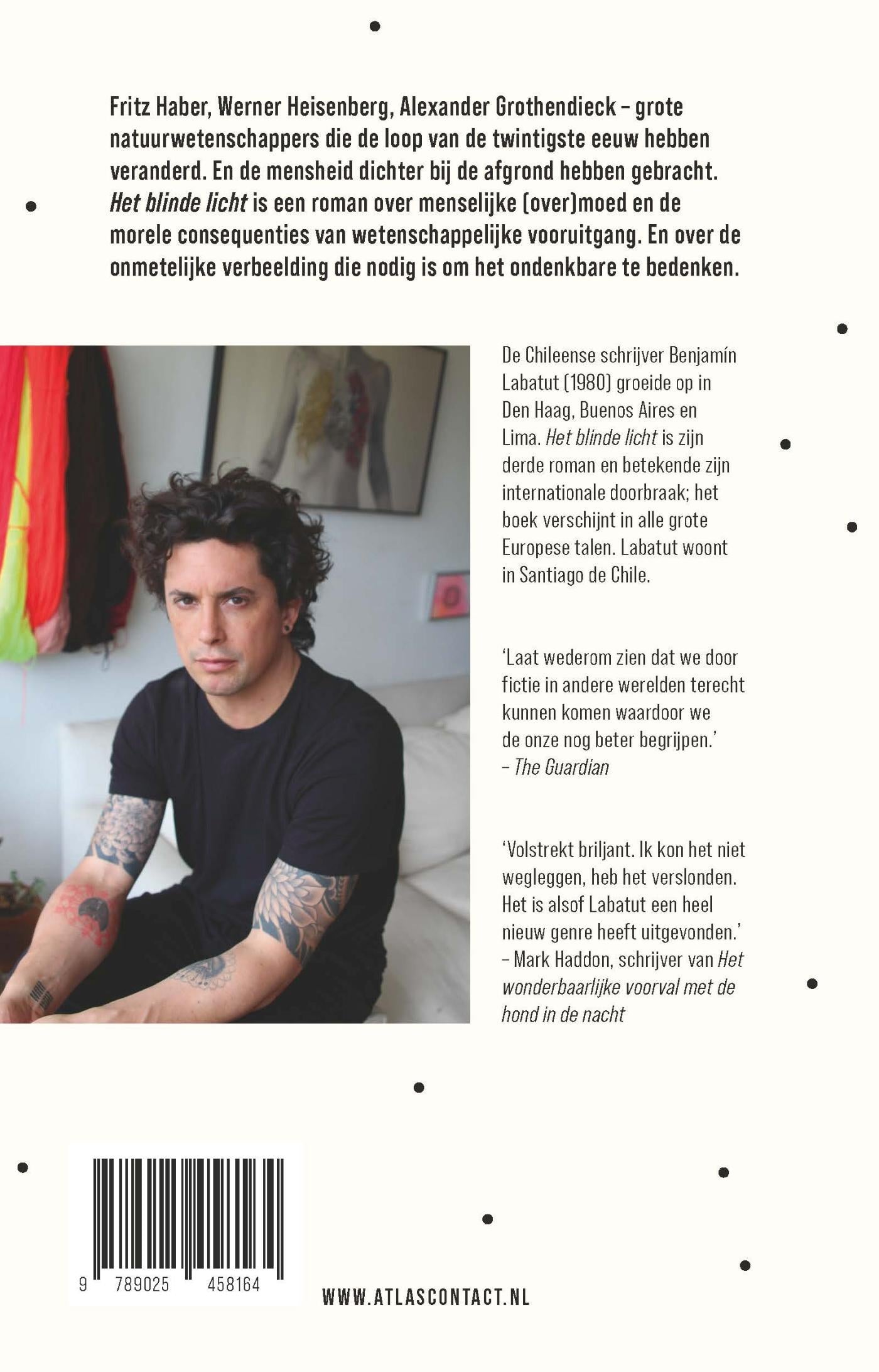 Over menselijke (over)moed en de morele consequenties van wetenschappelijke vooruitgang. En over de onmetelijke verbeelding die nodig is om het ondenkbare te bedenken. ‘Het blinde licht’ gaat over Fritz Haber, Werner Heisenberg en Alexander Grothendieck – grote wetenschappers die de loop van de twintigste eeuw hebben veranderd, en de mensheid daarmee dichter bij de afgrond hebben gebracht.