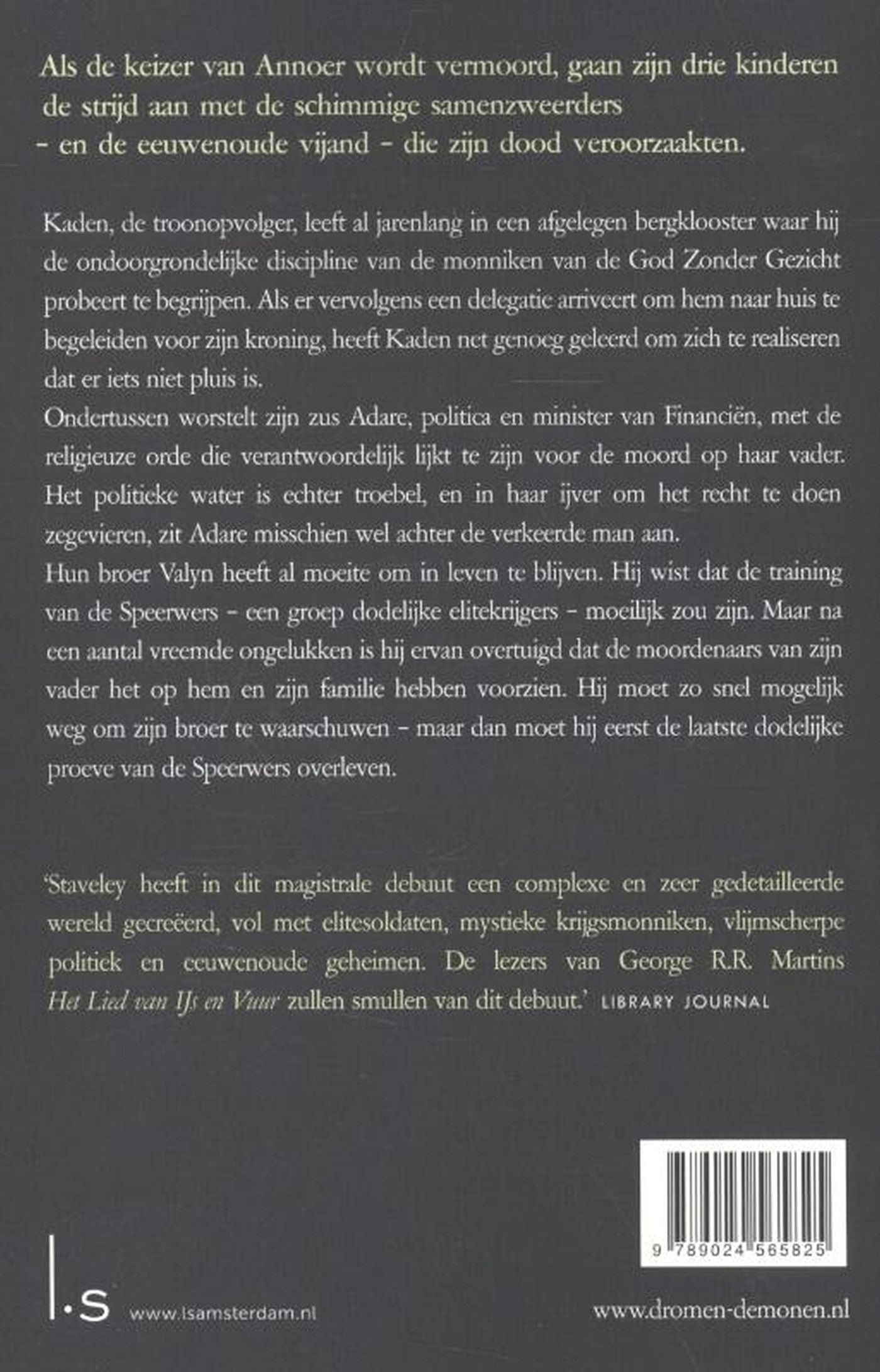 'Staveley heeft in dit magistrale debuut een complexe en zeer gedetailleerde wereld gecreëerd, vol met elitesoldaten, mystieke krijgsmonniken, vlijmscherpe politiek en eeuwenoude geheimen. De lezers van George R.R. Martins Het Lied van Ijs en Vuur zullen smullen van dit debuut.' Library Journal