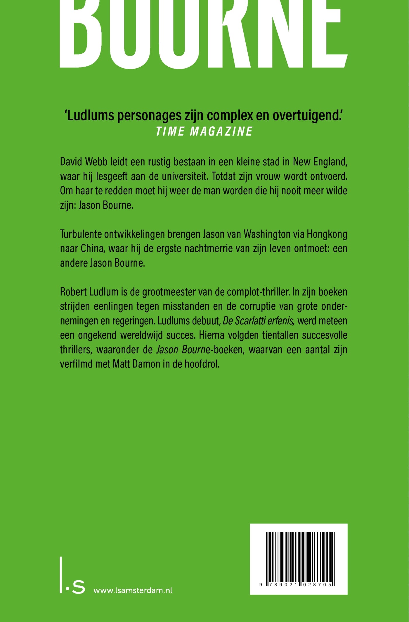 Robert Ludlum is de grootmeester van de complot-thriller. In zijn boeken strijden eenlingen tegen misstanden en de corruptie van grote ondernemingen en regeringen. Ludlums debuut, De Scarlatti erfenis, werd meteen een ongekend wereldwijd succes. Hierna volgden tientallen succesvolle thrillers, waaronder de Jason Bourne-boeken, waarvan een aantal zijn verfilmd met Matt Damon in de hoofdrol.