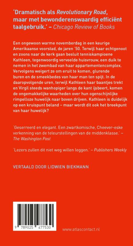Een ongewoon warme novemberdag in een keurige Amerikaanse voorstad, de jaren ’50. Terwijl haar echtgenoot en zoons naar de kerk gaan besluit tenniskampioene Kathleen, tegenwoordig verveelde huisvrouw, een duik te nemen in het zwembad van haar appartementencomplex. Vervolgens weigert ze om eruit te komen, glurende buren en de smeekbedes van haar man ten spijt. In de daaropvolgende uren, terwijl Kathleen haar baantjes trekt en Virgil steeds wanhopiger langs de kant ijsbeert, komen de ongemakkelijke waarheden over hun ogenschijnlijke rimpelloze huwelijk naar boven drijven. Kathleen is duidelijk op een kruispunt beland – maar wordt dit ook het breekpunt van haar huwelijk?