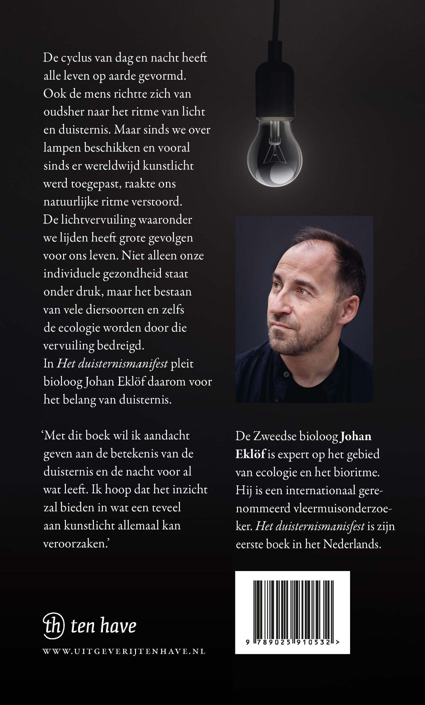 Met dit boek wil ik aandacht geven aan de betekenis van de duisternis en de nacht voor al wat leeft. Ik hoop dat dit boek inzicht zal bieden in wat een teveel aan kunstlicht allemaal kan veroorzaken.’ – Johan Eklöf