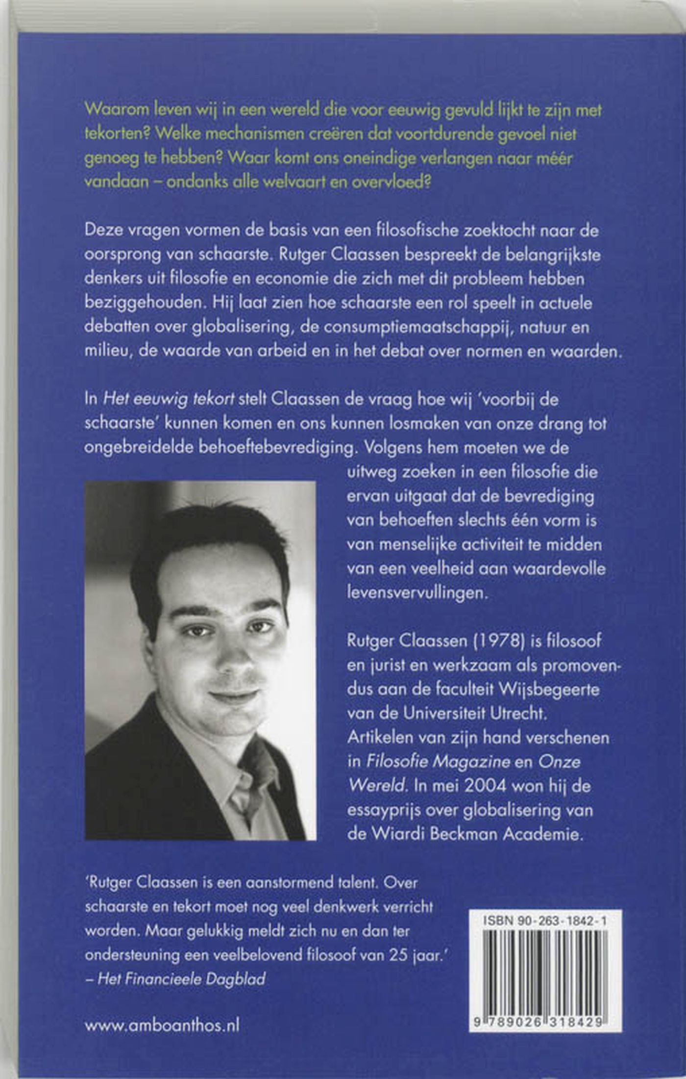 Rutger Claassen is universitair docent politieke filosofie aan de Universiteit Leiden. In 2004 verscheen van zijn hand Het eeuwig tekort, dat werd genomineerd voor de Socrates Wisselbeker. In 2008 promoveerde hij op The Market's Place in the Provision of Goods, dat werd bekroond met de Dissertatieprijs van de Onderzoeksschool Ethiek.