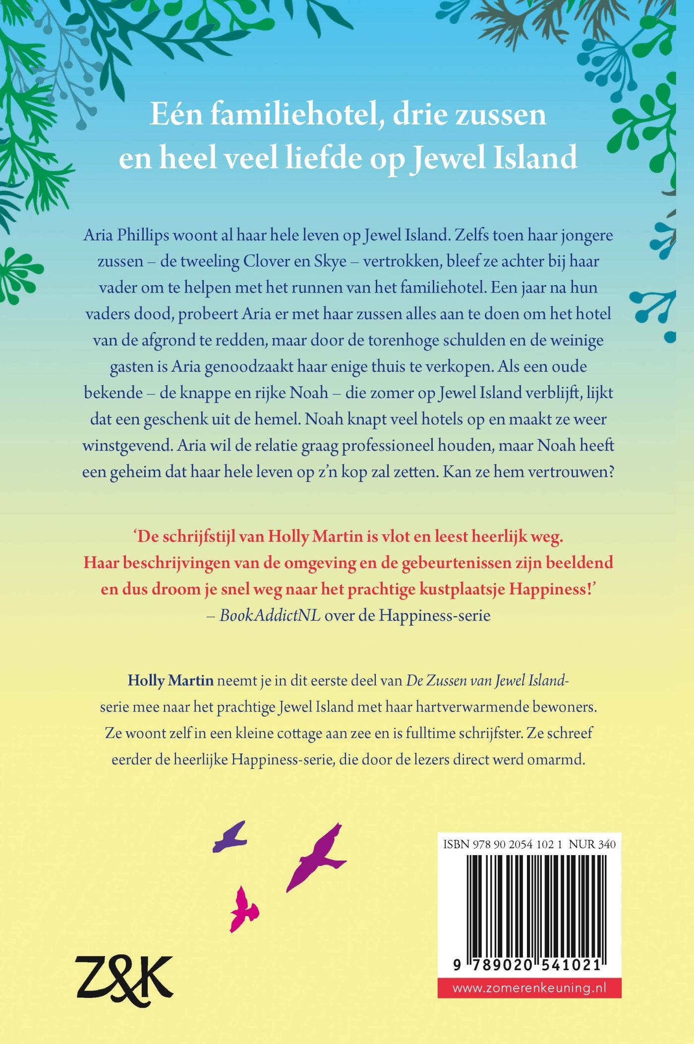 Holly Martin, bekend van haar Happiness-serie, komt met een fijne feelgoodroman waar je helemaal bij weg kunt zwijmelen. ‘Het familiehotel van Sapphire Bay’ is het eerste boek in Holly Martins feelgoodserie de Zussen van Jewel Island en is perfect voor de fans van Lucinda Riley, Nicola May en Jenny Colgan.
