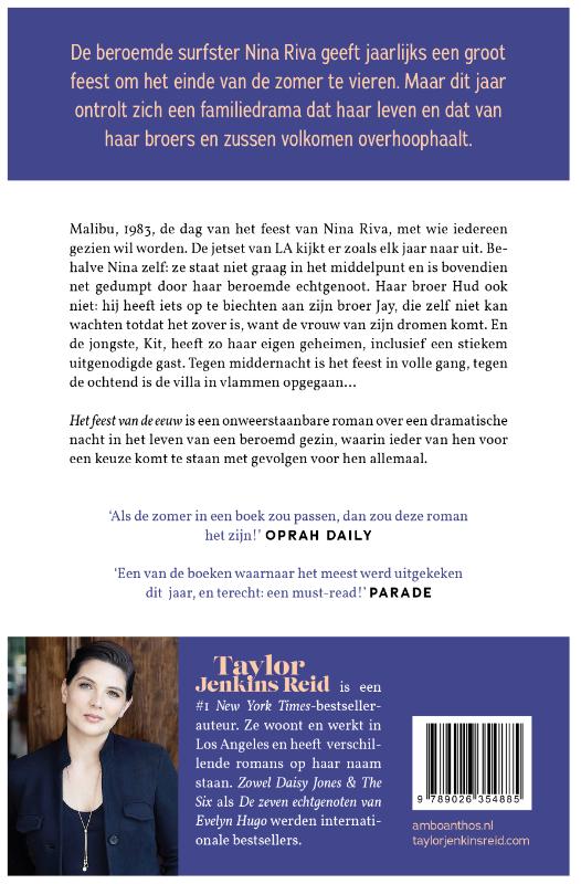Het feest van de eeuw, het derde deel in de California Dream serie, is de Nelderlandse vertaling van Malibu rising en een #1 New York Times-bestseller.