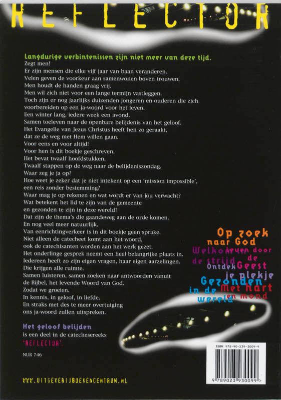 Langdurige verbintenissen zijn niet meer van deze tijd. Zegt men! Er zijn mensen die elke vijf jaar van baan veranderen. Velen geven de voorkeur aan samenwonen boven trouwen. Men houdt de handen graag vrij. Men wil zich niet voor een lange termijn vastleggen. Toch zijn er nog jaarlijks duizenden jongeren en ouderen die zich voorbereiden op een ja-woord voor het leven. Een winter lang, iedere week een avond. Samen toeleven naar de openbare belijdenis van het geloof. Het Evangelie van Jezus Christus heeft hen zo geraakt, dat ze de weg met Hem willen gaan. Voor eens en voor altijd! Voor hen is dit boekje geschreven. Het bevat twaalf hoofdstukken. Twaalf stappen op de weg naar de belijdeniszondag. Waar zeg je ja op? Hoe weet je zeker dat je niet intekent op een 'mission impossible', een reis zonder bestemming? Waar mag je op rekenen en wat wordt er van jou verwacht? Wat betekent het lid te zijn van de gemeente en gezonden te zijn in deze wereld? Dat zijn de thema's die gaandeweg aan de orde komen. En nog veel meer natuurlijk. Van eenrichtingverkeer is in dit boekje geen sprake. Niet alleen de catecheet komt aan het woord, ook de catechisanten worden aan het werk gezet. Het onderlinge gesprek neemt een heel belangrijke plaats in. Iedereen heeft zo zijn eigen vragen, haar eigen aarzelingen. Die krijgen alle ruimte. Samen luisteren, samen zoeken naar antwoorden vanuit de Bijbel, het levende Woord van God. Zodat we groeien. In kennis, in geloof, in liefde. En straks met des te meer overtuiging ons ja-woord zullen uitspreken.