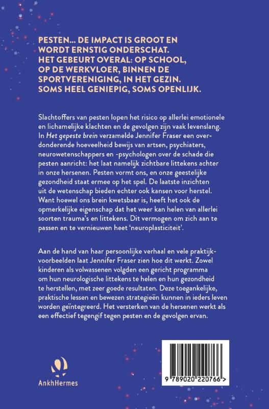 Aan de hand van haar persoonlijke verhaal en vele praktijkvoorbeelden laat Jennifer Fraser zien hoe dit werkt. Zowel kinderen als volwassenen volgden een gericht programma om hun neurologische littekens te helen en hun gezondheid te herstellen, met zeer goede resultaten. Deze toegankelijke, praktische lessen en bewezen strategieën kunnen in ieders leven worden geïntegreerd. Het versterken van de hersenen werkt als een effectief tegengif tegen pesten en de gevolgen ervan.