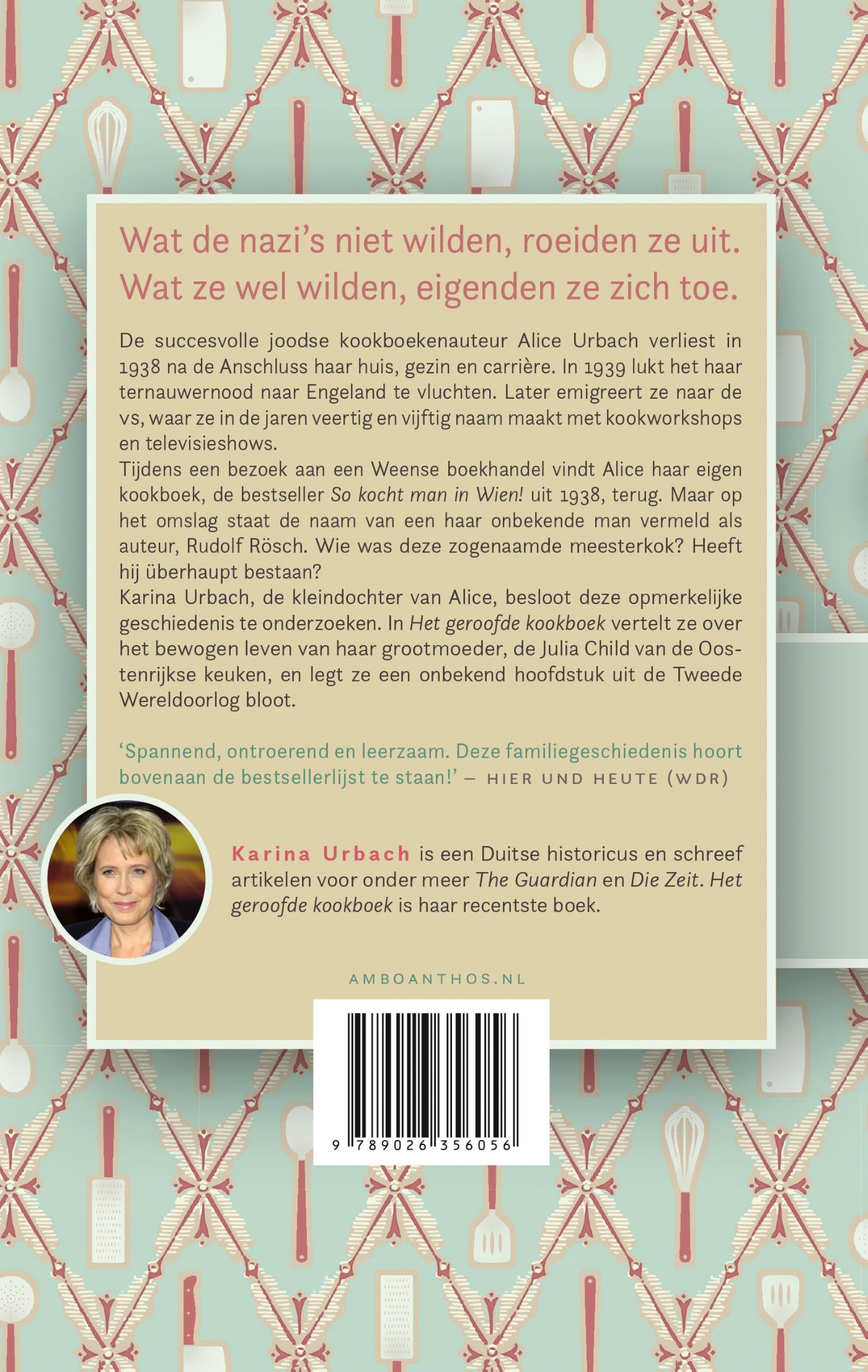 Karina Urbach, de kleindochter van Alice, besloot deze opmerkelijke geschiedenis te onderzoeken. In Het geroofde kookboek vertelt ze over het bewogen leven van haar grootmoeder, de Julia Child van de Oostenrijkse keuken, en legt ze een onbekend hoofdstuk uit de Tweede Wereldoorlog bloot.