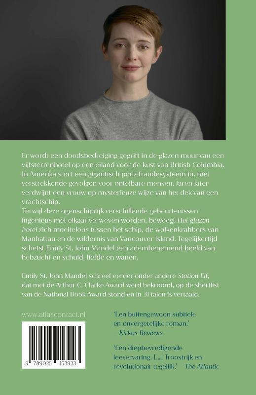 Terwijl deze ogenschijnlijk verschillende gebeurtenissen ingenieus met elkaar verweven worden, beweegt ‘Het glazen hotel’f zich moeiteloos tussen het schip, de wolkenkrabbers van Manhattan en de wildernis van Vancouver Island. Tegelijkertijd schetst Emily St. John Mandel een adembenemend beeld van hebzucht en schuld, liefde en wanen.
