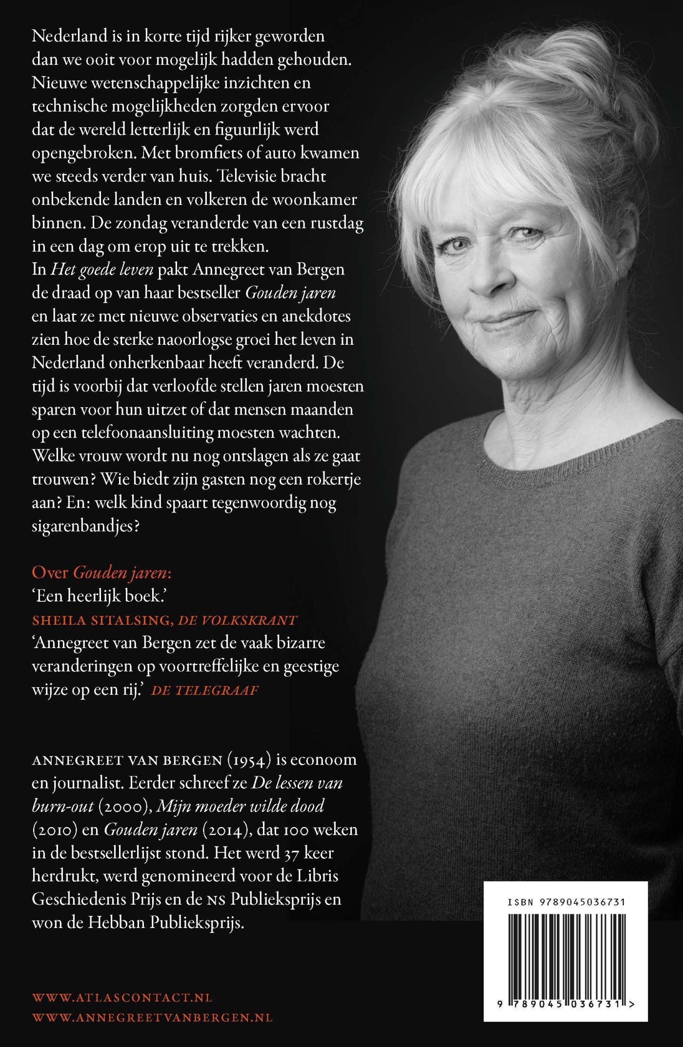 In ‘Het goede leven’ pakt Annegreet van Bergen de draad op van haar bestseller ‘Gouden jaren’. Nederland is in korte tijd rijker geworden dan we ooit voor mogelijk hadden gehouden. Nieuwe wetenschappelijke inzichten en technische mogelijkheden zorgden ervoor dat de wereld letterlijk en figuurlijk werd opengebroken. Met bromfiets of auto kwamen we steeds verder van huis. Televisie bracht onbekende landen en volkeren de woonkamer binnen.