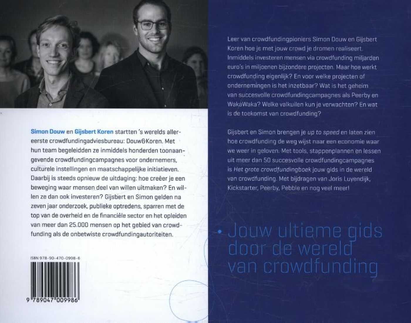 is de toekomst van crowdfunding? Gijsbert en Simon brengen je up to speed en laten zien hoe crowdfunding de weg wijst naar een economie waar we weer in geloven. Met tools, stappenplannen en lessen uit meer dan 50 succesvolle crowdfundingcampagnes is Het grote crowdfundingboek jouw gids in de wereld van crowdfunding. Met bijdragen van Joris Luyendijk, Kickstarter, Peerby, Pebble en nog veel meer!