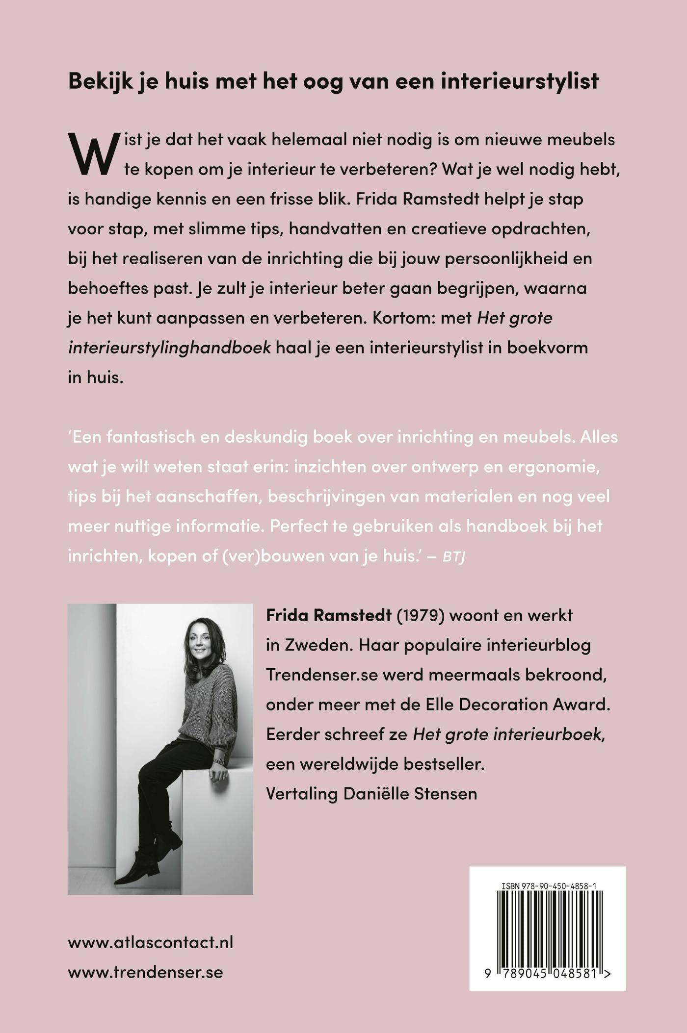 In dit boek helpt de Zweedse Frida Ramstedt je met het oog van een interieurstylist te kijken naar je eigen huis. Ze doet dit aan de hand van slimme tips, praktische handvatten en 65 creatieve opdrachten. Wist je dat het vaak helemaal niet nodig is om nieuwe meubels te kopen om je interieur te verbeteren? Wat je wel nodig hebt, is handige kennis en een frisse blik. Frida Ramstedt helpt je stap voor stap bij het realiseren van de inrichting die bij jouw persoonlijkheid en behoeftes past. Je zult je interieur beter gaan begrijpen, waarna je het kunt aanpassen en verbeteren. Kortom: met Het grote interieurstylinghandboek haal je een interieurstylist in boekvorm in huis.