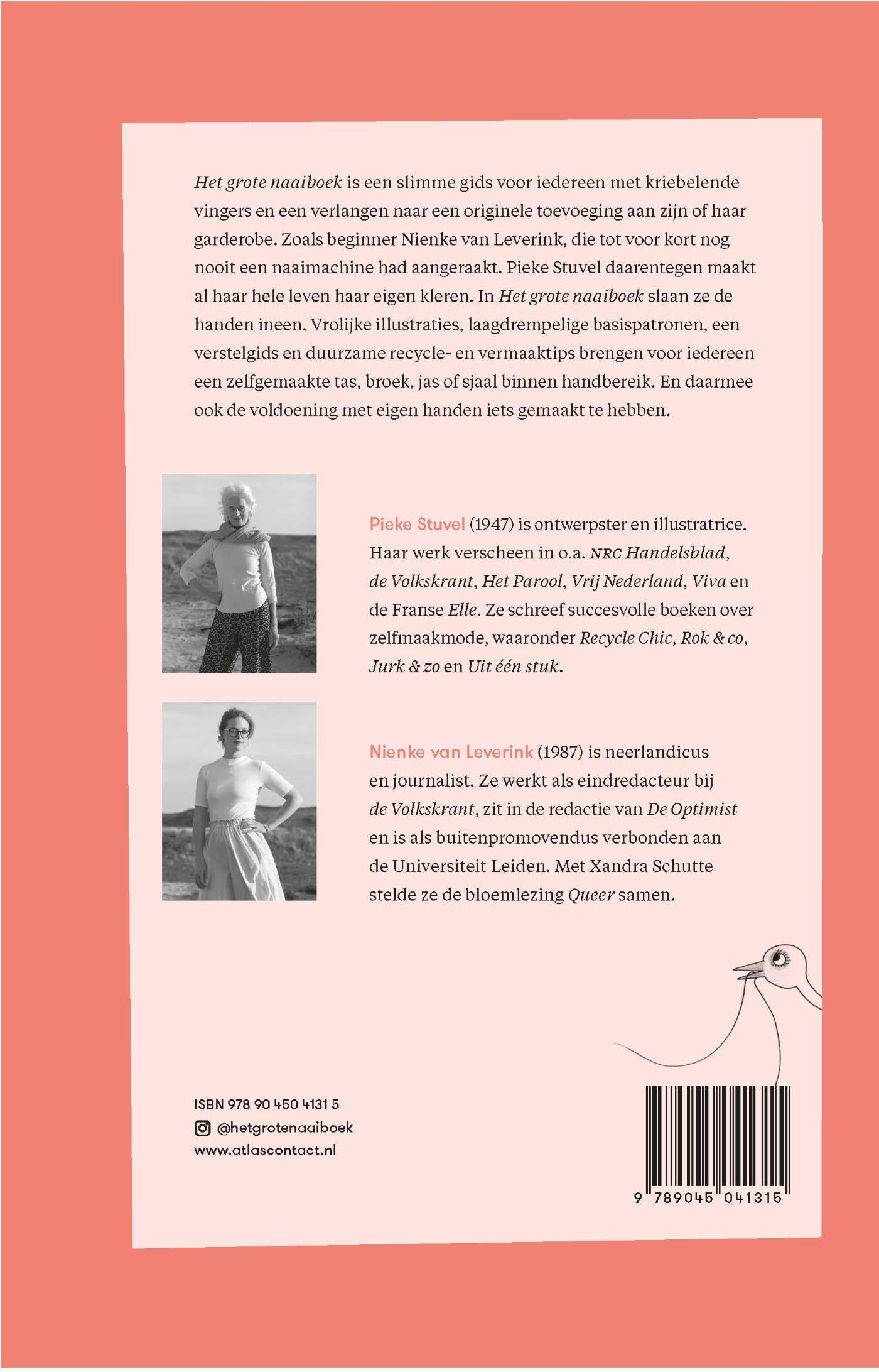 ‘Het grote naaiboek’ van Nienke van Leverink en Pieke Stuvel is een vrolijke en slimme gids voor iedereen met kriebelende vingers en een verlangen naar een originele toevoeging aan zijn of haar garderobe. Zoals beginner Nienke van Leverink, die tot voor kort nog nooit een naaimachine had aangeraakt. Pieke Stuvel daarentegen maakt al haar hele leven haar eigen kleren. In ‘Het grote naaiboek’ slaan ze de handen ineen. Vrolijke illustraties, laagdrempelige basispatronen, een stoffengids en duurzame recycle, verstel en vermaaktips brengen voor iedereen een zelfgemaakte tas, broek, jas of sjaal binnen handbereik. En daarmee ook het plezier en de voldoening met eigen handen iets gemaakt te hebben.