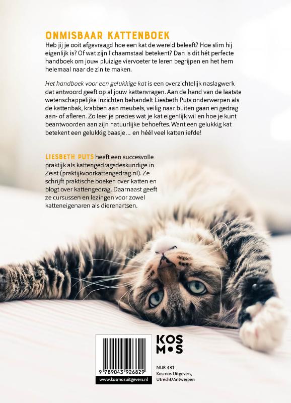 ‘Het handboek voor een gelukkige kat’ van Liesbeth Puts is het perfecte naslagwerk om het je kat helemaal naar de zin te maken. De vele mooie foto’s en praktische richtlijnen helpen iedereen om katten beter te begrijpen. Want zelfs het schattigste jonge poesje is van nature een wild roofdier. Hoe kan de kattenliefhebber verstaan wat zijn huisdier eigenlijk wil en beantwoorden aan zijn natuurlijke behoeftes? Al is het maar om er zelf gelukkig van te worden, want een probleemkat is lastig en een gelukkige kat bezorgt zijn baasje juist veel plezier. Dit boek is het ideale cadeau voor elke kattenliefhebber, met tips die iedereen helpen om katten te begrijpen. Met veel verhelderende én aandoenlijke foto’s.