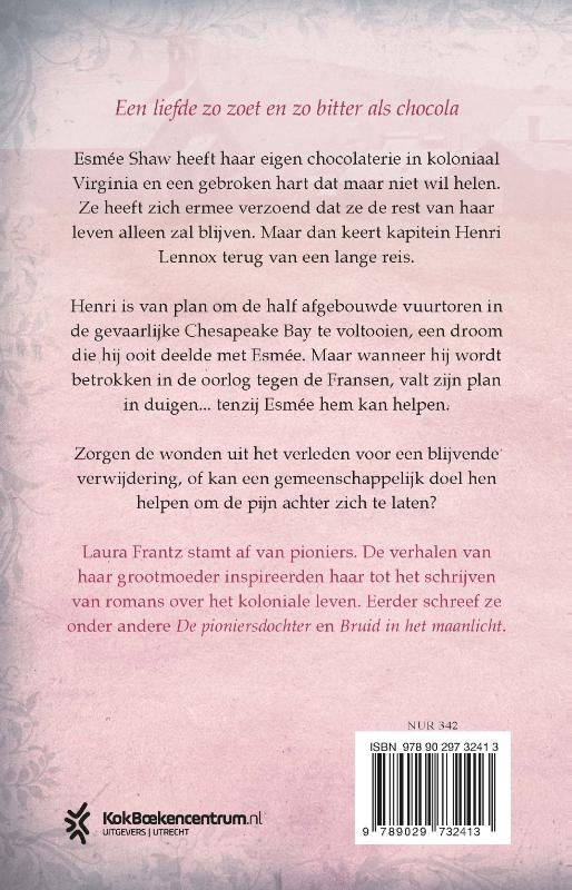 Het hart van de chocolaterie van Laura Frantz is een hartverwarmende roman over de eigenaar van een chocolaterie, Esmée Shaw, en een legerkapitein, Henri Lennox.