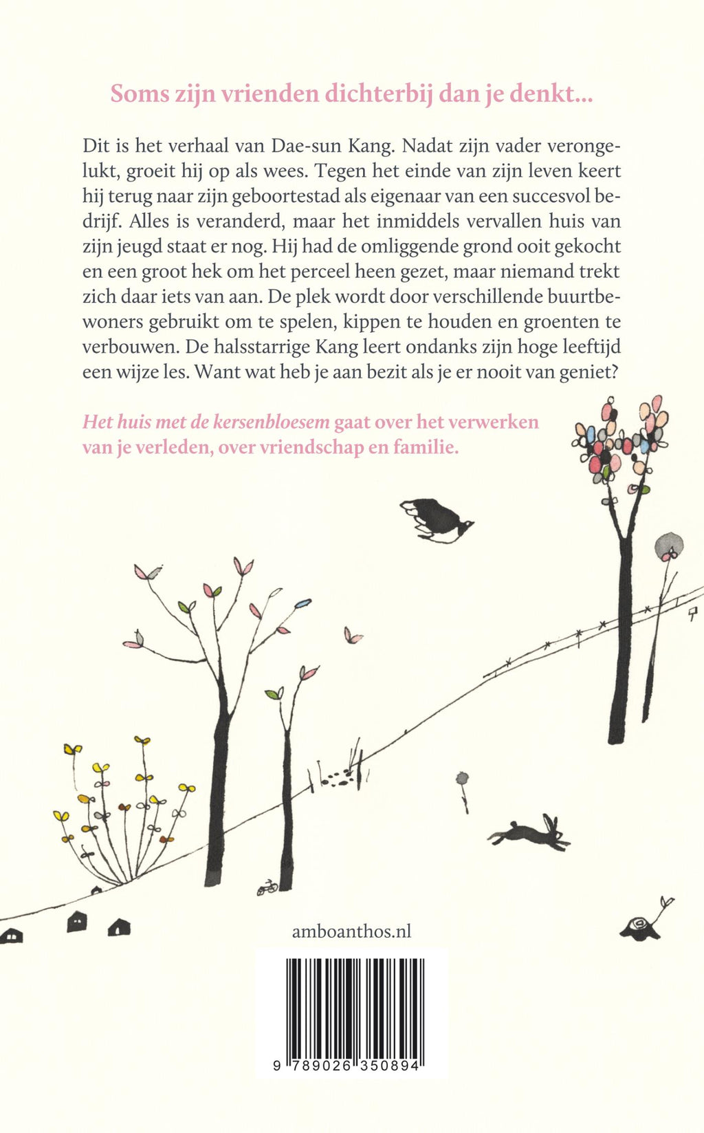Het huis met de kersenbloesem van Sun-mi Hwang vertelt het verhaal van Dae-su Kang. Nadat zijn vader verongelukt is, groeit hij op als wees. Tegen het einde van zijn leven keert hij terug naar zijn geboortestad als eigenaar van een succesvol bedrijf. Alles is veranderd, maar het inmiddels vervallen huis van zijn jeugd staat er nog. Hij had de grond ooit gekocht en een groot hek om het perceel heen gezet. Maar niemand trekt zich daar iets van aan: de plek wordt door verschillende bewoners gebruikt om te spelen, kippen te houden en groenten te verbouwen. Kang leert ondanks zijn hoge leeftijd een wijze les. Want wat heb je aan bezit als je er nooit van geniet?