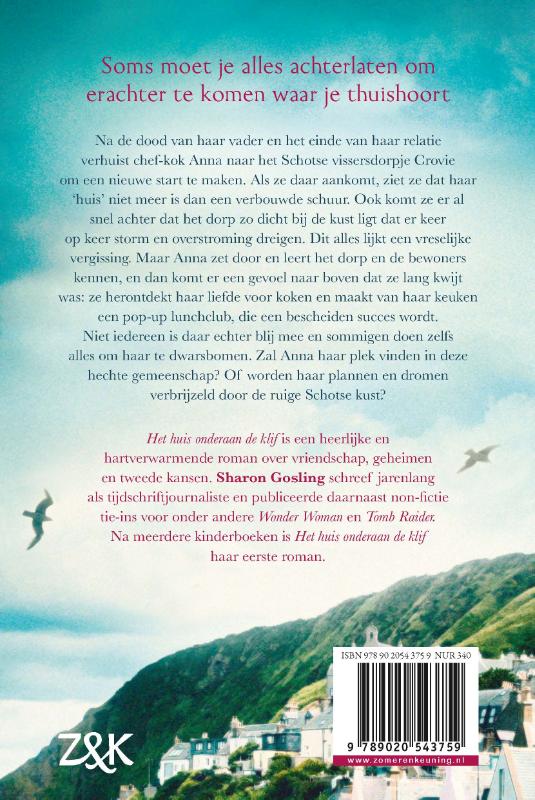 In 'Het huis onderaan de klif' van Sharon Gosling is chef Anna na een verbroken relatie van twintig jaar toe aan een nieuwe start. Ze verhuist naar Crovie, een klein vissersdorpje aan de oostkust van Schotland, maar eigenlijk heeft ze meteen spijt. Zodra ze het dorp en de mensen beter leert kennen, vindt ze ook zichzelf en haar liefde voor koken weer terug. Ze besluit haar keuken om te toveren in een kleine lunchclub. Haar leven lijkt eindelijk weer de goede kant op te gaan, zolang niets haar nieuwgevonden geluk verpest… 'Het huis onderaan de klif' is een heerlijke romance om bij weg te dromen. Voor de lezers van Katie Fforde en Santa Montefiore.