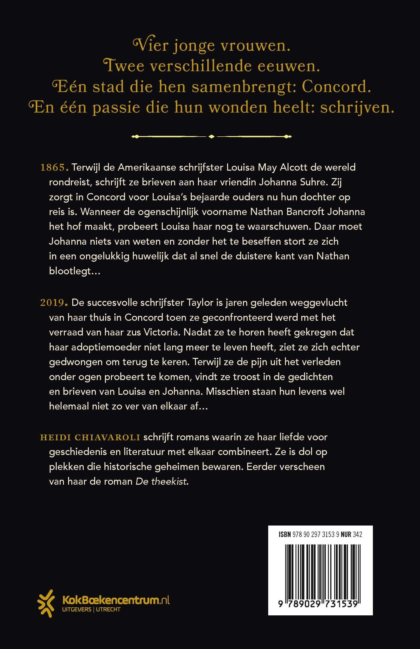 2019. De succesvolle schrijfster Taylor is jaren geleden weggevlucht van haar thuis in Concord toen ze geconfronteerd werd met het verraad van haar zus Victoria. Nadat ze te horen heeft gekregen dat haar adoptiemoeder niet lang meer te leven heeft, ziet ze zich echter gedwongen om terug te keren. Terwijl ze de pijn uit het verleden onder ogen probeert te komen, vindt ze troost in de gedichten en brieven van Louisa en Johanna. Misschien staan hun levens wel helemaal niet zo ver van elkaar af…