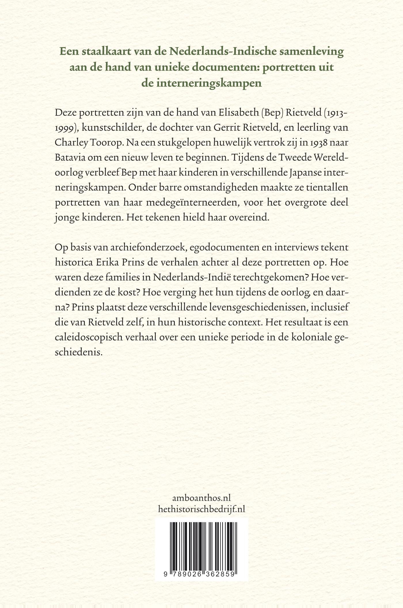 Deze portretten zijn van de hand van Elisabeth (Bep) Rietveld (1913-1999), kunstschilder, de dochter van Gerrit Rietveld, en leerling van Charley Toorop. Na een stukgelopen huwelijk vertrok zij in 1938 naar Batavia om een nieuw leven te beginnen. Tijdens de Tweede Wereldoorlog verbleef Bep met haar kinderen in verschillende Japanse interneringskampen. Onder barre omstandigheden maakte ze tientallen portretten van haar medegeïnterneerden, voor het overgrote deel jonge kinderen. Het tekenen hield haar overeind.