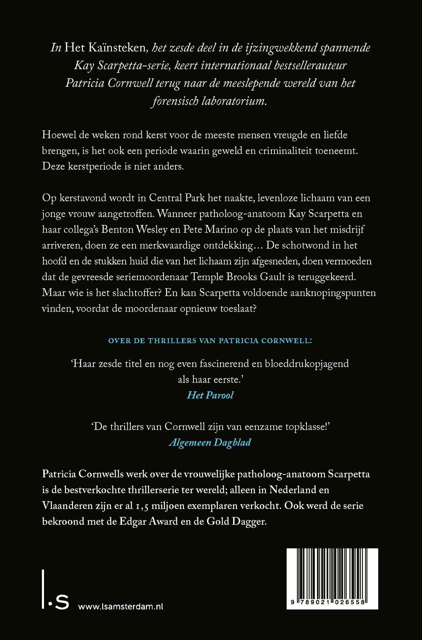 (POD) Het Kaïnsteken is het zesde boek uit de bloedstollende bestsellerserie rond patholoog-anatoom Kay Scarpetta van auteur Patricia Cornwell. Deze serie, bestaande uit meer dan 20 bloedstollende crimethrillers, betekende Patricia Cornwells doorbraak als grondlegger van de pathologisch-anatomische thriller.