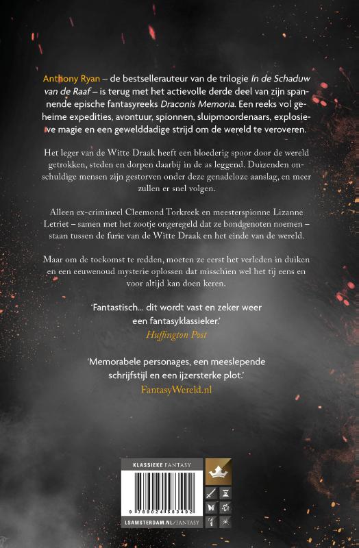 Anthony Ryan – de bestsellerauteur van de trilogie In de Schaduw van de Raaf – is terug met de finale van zijn spannende epische fantasy-trilogie Draconis Memoria. Een reeks vol geheime expedities, avontuur, spionnen, sluipmoordenaars, explosieve magie en een gewelddadige strijd om de wereld te veroveren.