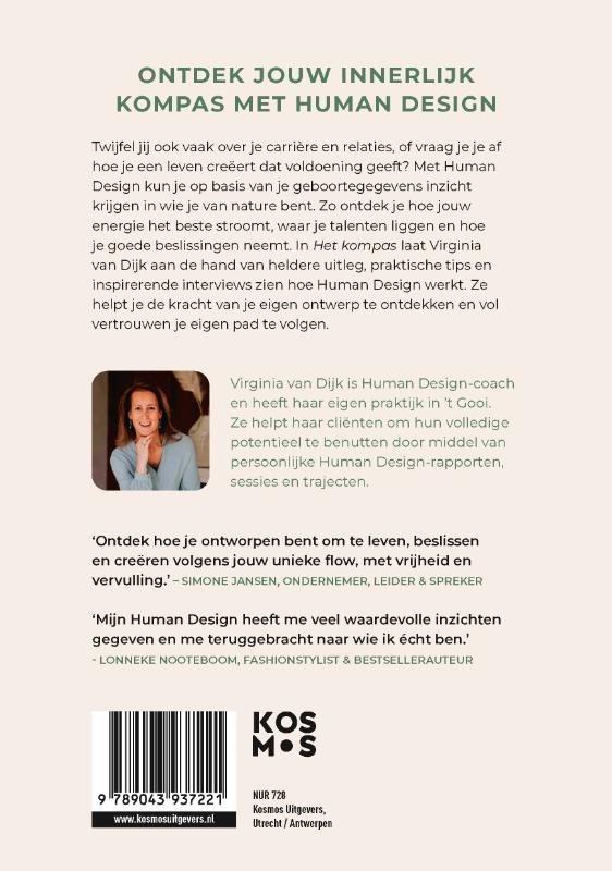 Design kun je op basis van je geboortegegevens inzicht krijgen in wie je van nature bent. Zo ontdek je hoe jouw energie het beste stroomt, waar je talenten liggen en hoe je goede beslissingen neemt. In Het kompas laat Virginia van Dijk aan de hand van heldere uitleg, praktische tips en inspirerende interviews zien hoe Human Design werkt. Ze helpt je de kracht van je eigen ontwerp te ontdekken en vol vertrouwen je eigen pad te volgen.