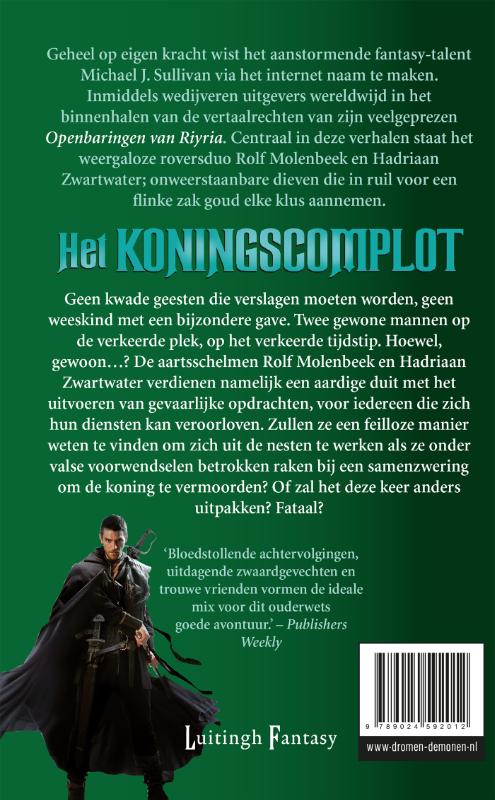 Met zijn boeken over het sluwe roversduo Rolf Molenbeek en Hadriaan Zwartwater wist Michael J. Sullivan in korte tijd naam te maken als de nieuwe koning van avontuurlijke fantasyromans. In dit eerste deel van De Openbaringen van Riyria worden de aartsschelmen Rolf en Hadriaan vals beschuldigd van koningsmoord…