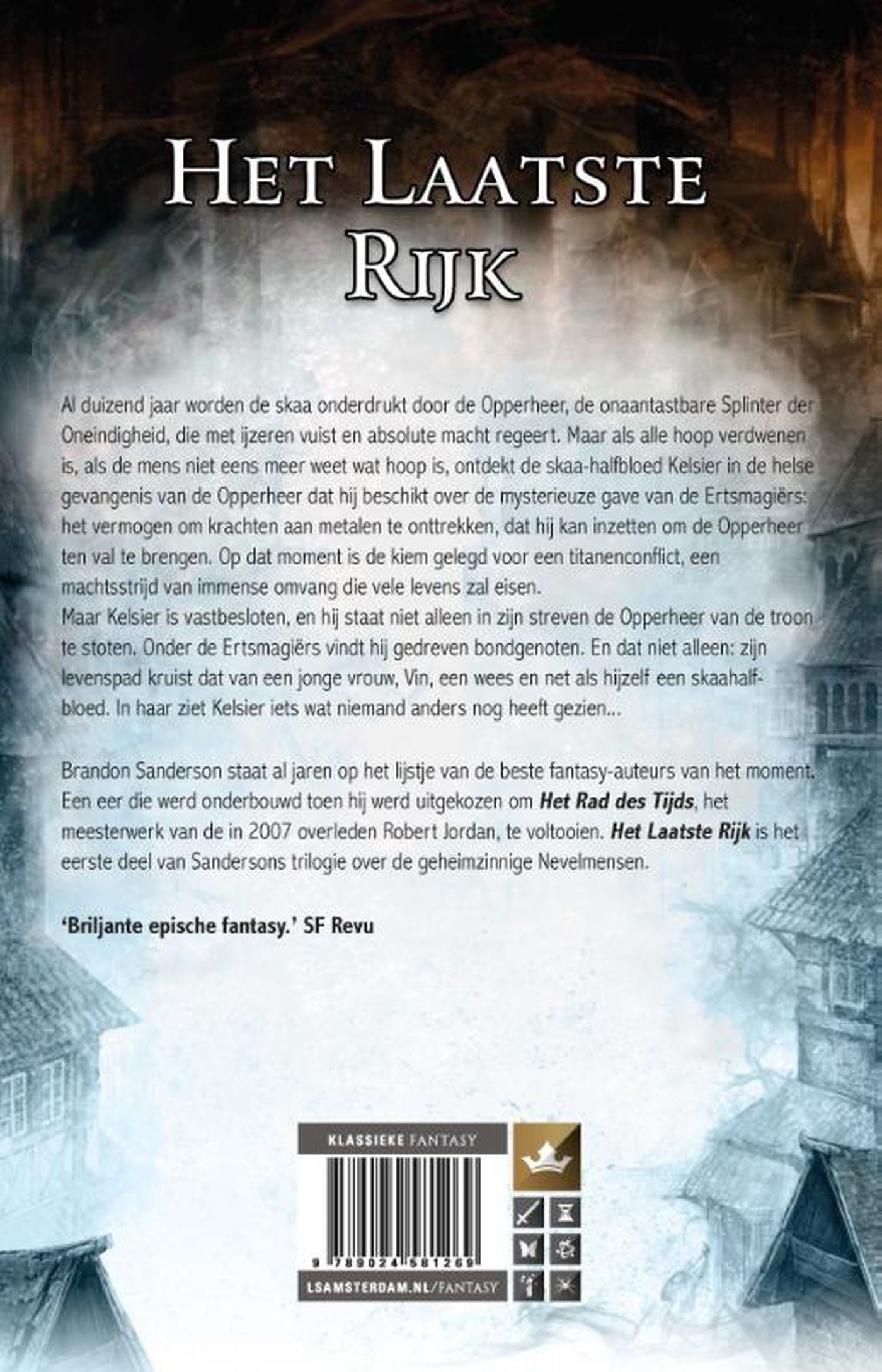 Het Laatste Rijk is het eerste deel van Sandersons trilogie over de geheimzinnige Nevelaars, waarmee hij stormenderhand het Angelsaksisch taalgebied veroverde en zijn naam vestigde. Meer dan eens worden zijn boeken vergeleken met die van George R.R. Martin en Raymond E. Feist.
