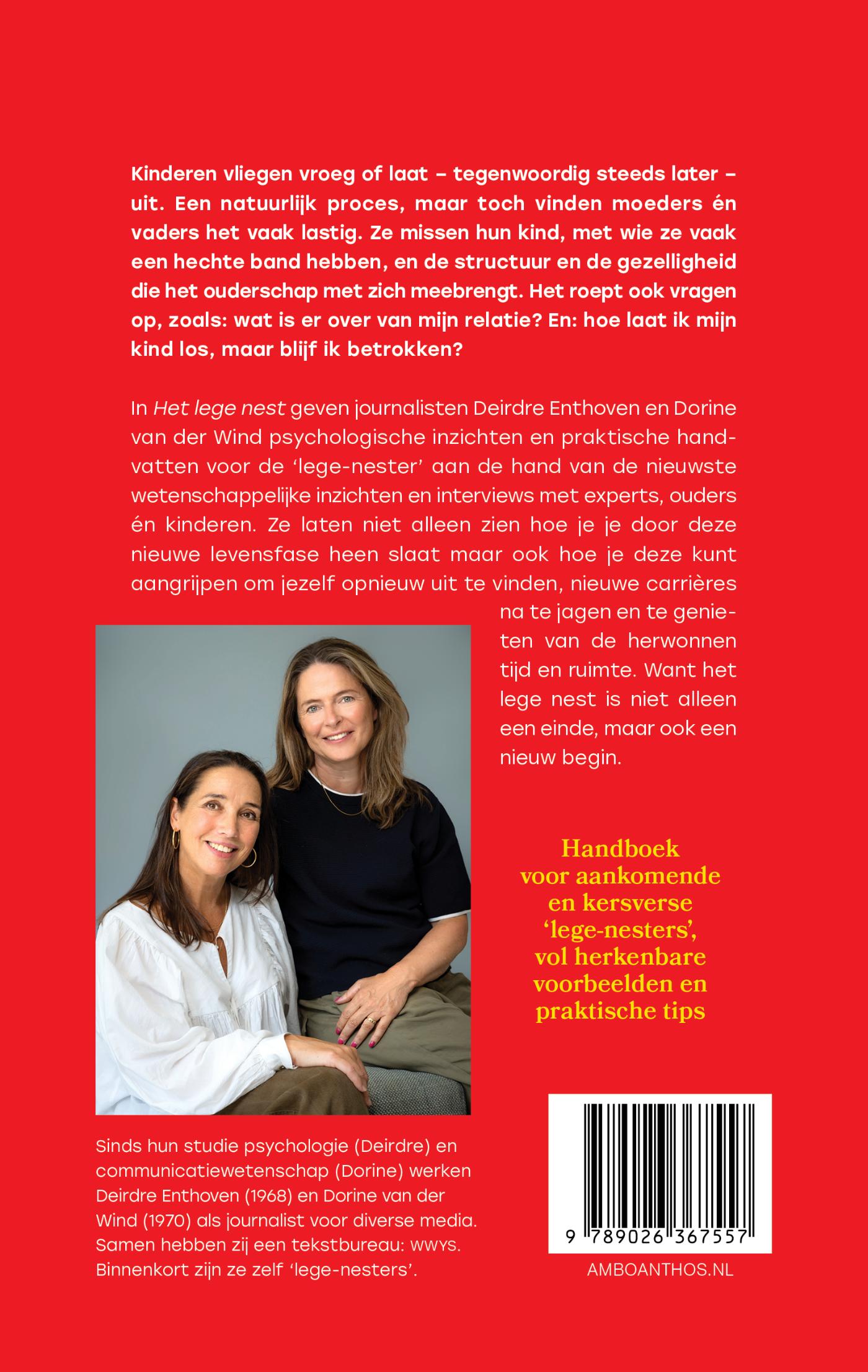 In Het lege nest geven journalisten Deirdre Enthoven en Dorine van der Wind psychologische inzichten en praktische handvatten voor de 'lege-nester' door in het meest recente wetenschappelijk onderzoek te duiken en sociologen, psychologen, therapeuten, een groot aantal ouders én kinderen te interviewen. Ze laten zien hoe je je op deze periode kunt voorbereiden en deze kunt benutten om jezelf opnieuw uit te vinden, nieuwe carrières na te jagen en te genieten van de herwonnen tijd en ruimte. Want het lege nest is niet alleen een einde, maar ook een nieuw begin.