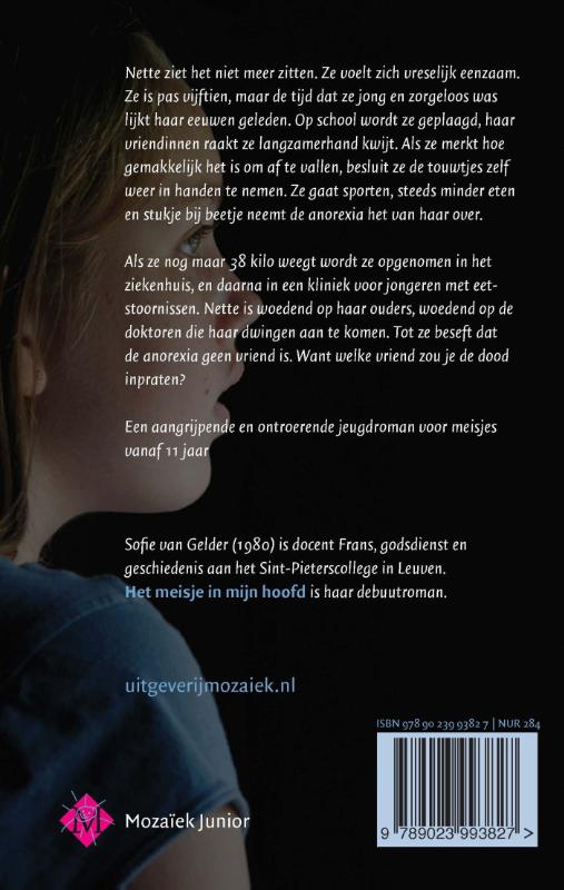 Sofie van Gelder (1980) is docent Frans, godsdienst en geschiedenis aan het Sint-Pieterscollege in Leuven. Het meisje in mijn hoofd is haar debuutroman.