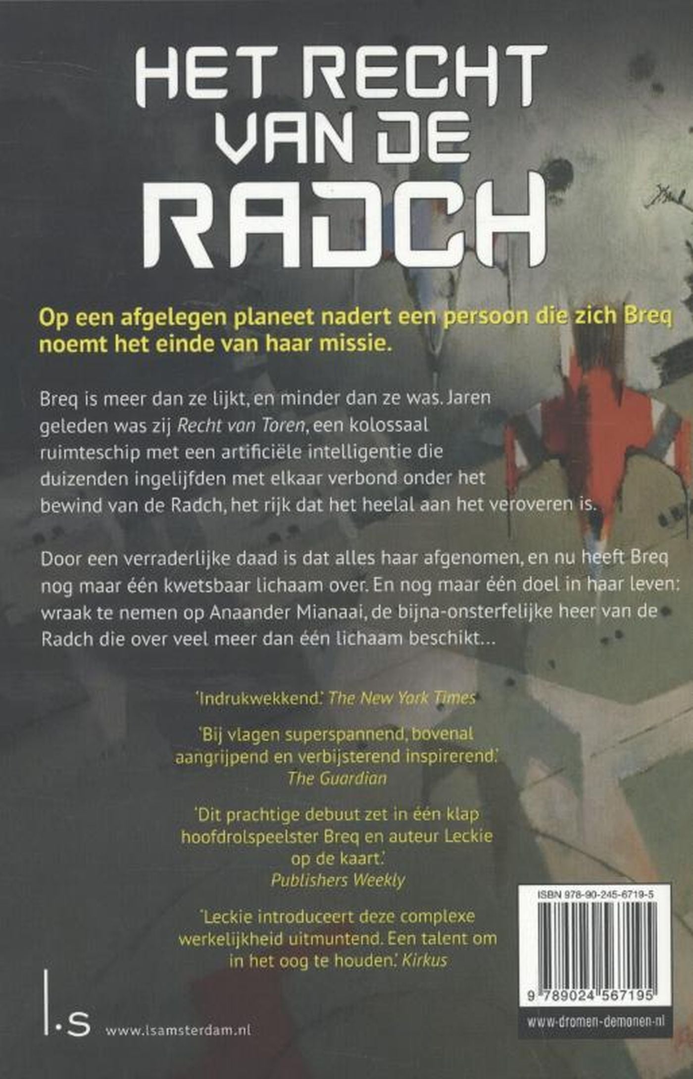 Breq is meer dan ze lijkt, en minder dan ze was. Jaren geleden was zij Recht van Toren, een kolossaal ruimteschip met een artificiële intelligentie die duizenden ingelijfden met elkaar verbond onder het bewind van de Radch, het rijk dat het heelal aan het veroveren is.