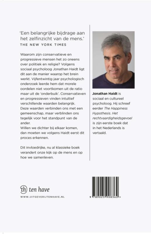 Waarom zijn conservatieve en progressieve mensen het zo oneens over politiek en religie? Volgens sociaal psycholoog Jonathan Haidt ligt dit aan de manier waarop het brein werkt. Conservatieven en progressieven vinden instinctief verschillende waarden belangrijk. Deze waarden verbinden ons met een gemeenschap, maar verblinden ons tegelijk voor het standpunt van de ander. Volgens Haidt is kennis van dit proces het begin om dichter bij elkaar te komen.