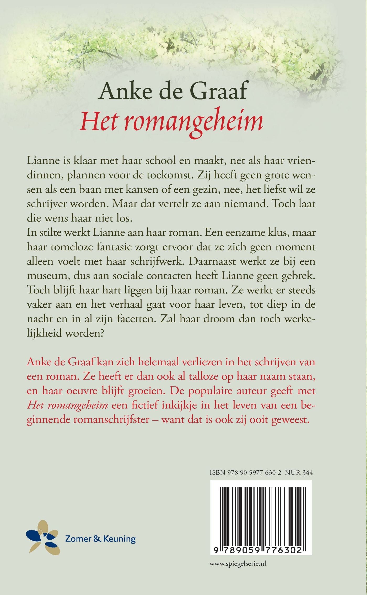 Lianne is klaar met haar school en maakt, net als haar vriendinnen, plannen voor de toekomst. Zij heeft geen grote wensen als een baan met kansen of gezin, nee, het liefst wil ze schrijfster worden. Maar dat vertelt ze aan niemand. Toch laat die wens haar niet los. In stilte werkt Lianne aan haar roman. Een eenzame klus, maar haar tomeloze fantasie zorgt ervoor dat ze zich geen moment alleen voelt met haar schrijfwerk. Daarnaast werkt ze bij een museum, dus aan sociale contacten heeft Lianne geen gebrek. Toch blijft haar hart liggen bij haar roman. Ze werkt er steeds vaker aan en het verhaal gaat voor haar leven, tot diep in de nacht en in al zijn facetten. De echte wereld en haar fantasie raken dusdanig met elkaar vervlochten dat Lianne van geen ophouden meer weet. Anke de Graaf (Enkhuizen) kan zich helemaal verliezen in het schrijven van een roman. Ze heeft er dan ook al talloze op haar naam staan, en haar oeuvre blijft groeien. De populaire auteur geeft met Het romangeheim een fictief inkijkje in het leven van een beginnende romanschrijfster - want dat is ook zij ooit geweest.